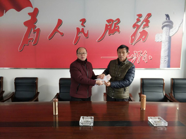 2018年2月7日,受公司董事長、總經理、支部書記儲召才同志委托,支部副書記劉曉峰一行到溫泉鎮蓮花村扶貧慰問,向該捐贈慰問金5000元。劉曉峰一行還到11戶結對戶家中走訪慰問,了解貧困戶生產生活情況,并向每戶贈送了食用油和蘋果,在春節即將來臨之際向結對貧困戶送去公司的一片愛心和溫暖。